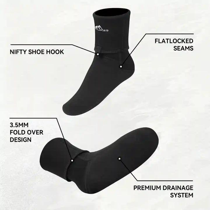 Engineered for anglers and outdoor explorers, these neoprene wading socks shield your feet from cold water, sharp rocks, and abrasive boots. The insulating 3mm neoprene maintains warmth while ensuring comfort during long hours in rivers, lakes, or coastal shallows.